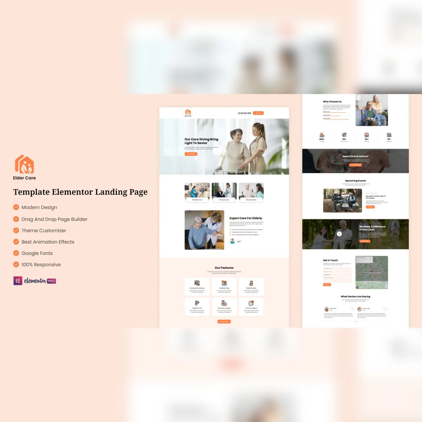 Elder Care also supports multiple languages, free images, and customizable fonts and colors, allowing you to tailor every detail to your brand. With its pixel-perfect structure and modern visual effects, your site will look trustworthy, caring, and professional.